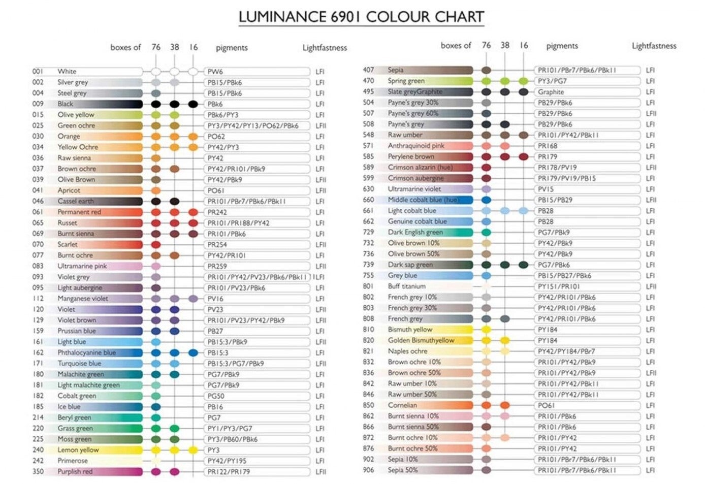 De Luminance kleurpotloden combineren de hoogste lichtbestendigheid met een crèmige zachtheid.